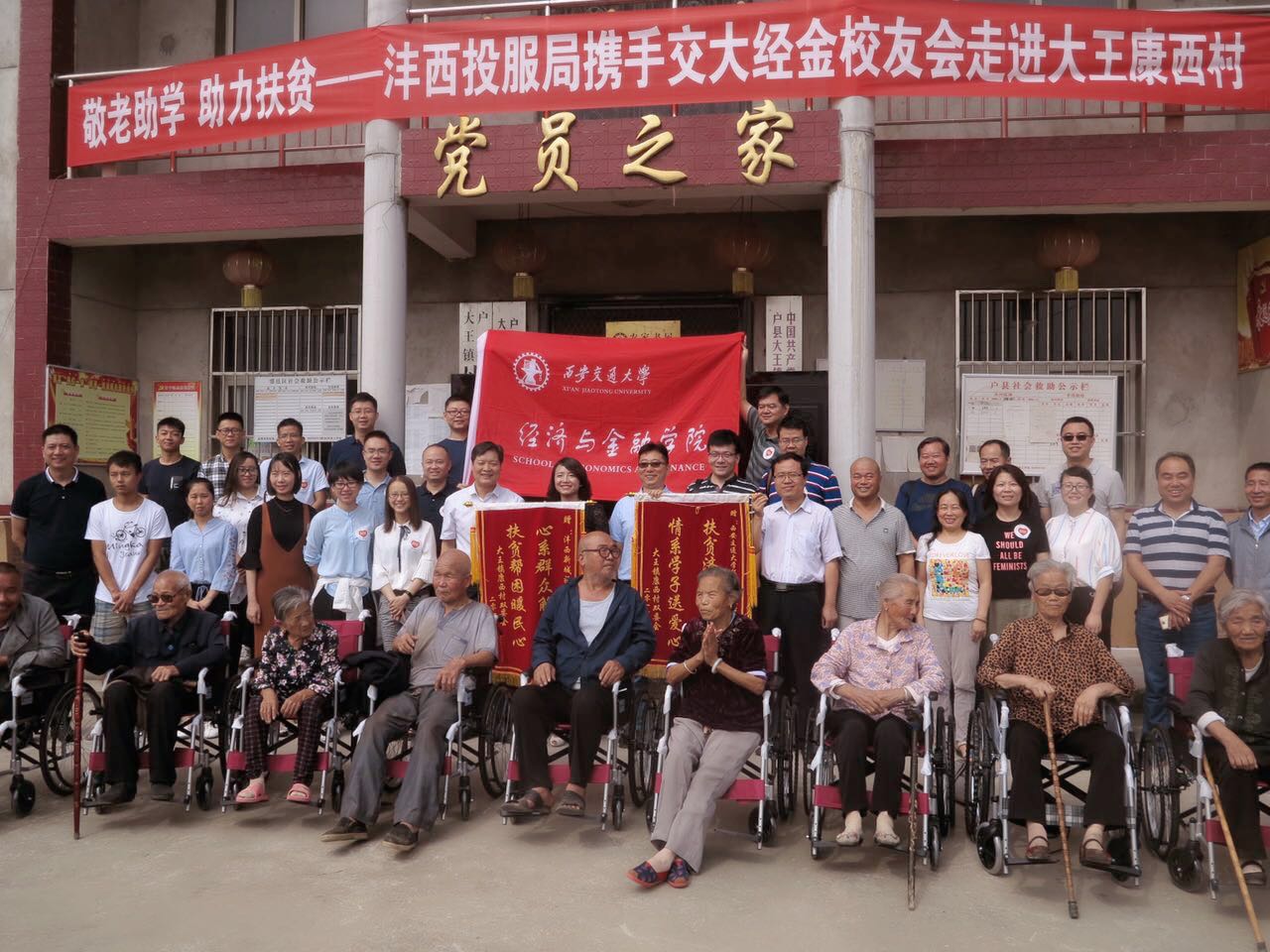 部分师生、校友携手西咸新区沣西新城走进鄠邑区大王镇康西村举办“敬老助学、助力扶贫”爱心捐赠活动。沣西新城投资服务局局长谢慧莹、扶贫办主任严海啸、大王镇镇长刘亦龙、康西村支部书记姚学良、黑料网