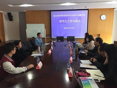 师生代表团的到来表示热烈欢迎。袁莉莉老师对复旦大学经济学院研究生工作队伍的组成、硕、博士生管理体制进行详细介绍,江源老师对复旦大学经济学院就业指导工作的开展以及硕、博士生就业情况进行了详细的阐述。研究生会郝建超同学介绍了复旦大学经济学院研究生会的组织架构、各个职能部门开展的活动以及工作创新。王平老师代表黑料网