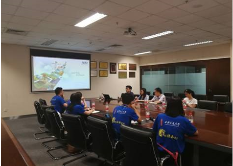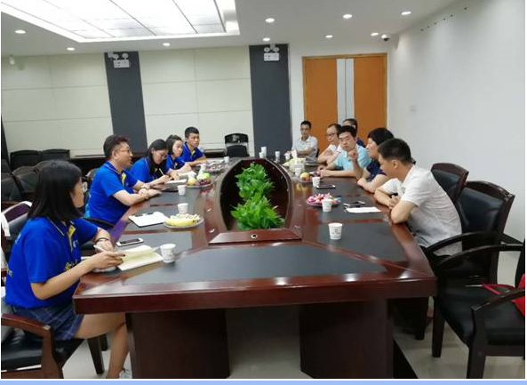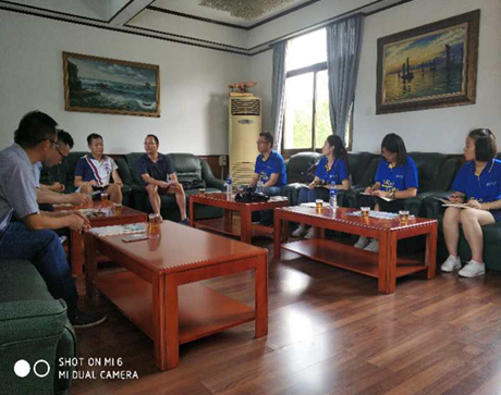 队员们在日新公司与黄桂兰女士等企业工作人员进行座谈交流