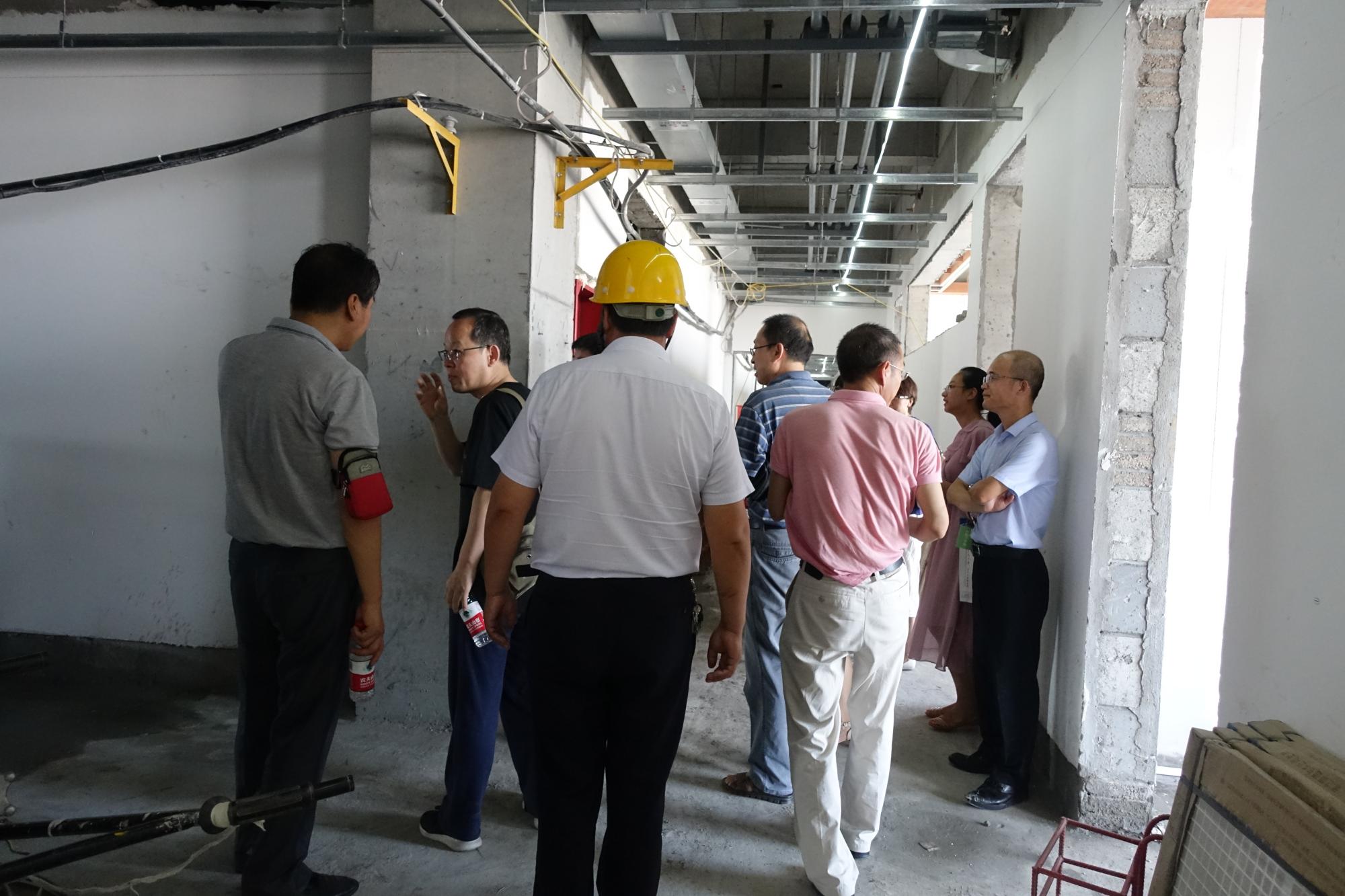 在工作人员的带领下,老师们一间间参观了5号文科大楼部分楼层办公室,实地测量房间面积。根据现场情况,规划各研究所、行政办公室、会议室等所在区域,积极讨论房屋装修、搬迁安排等问题。