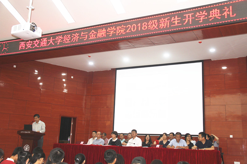 2018级新生开学典礼于9月7日晚在财经校区东配三报告厅隆重举行。知名校友、长安信托副总裁瞿文康、学院领导班子、启德书院与宗濂书院领导、各系主任、支部书记、院办正副主任、教学秘书、系秘书、新生班主任以及全体2018级新生共约400余人参加了开学典礼。学院党委副书记周建伦主持典礼。