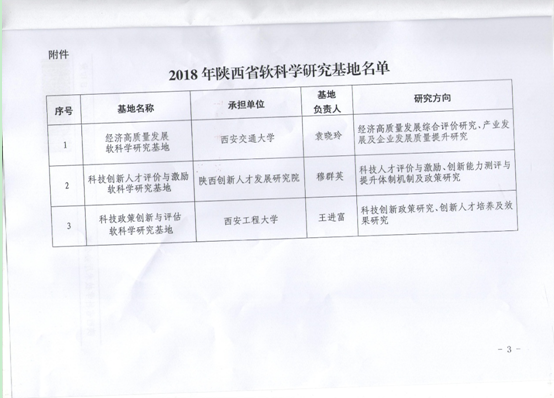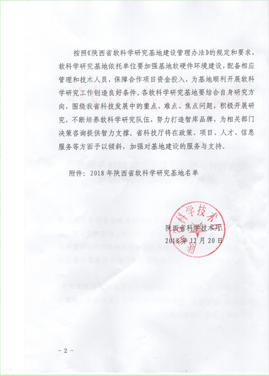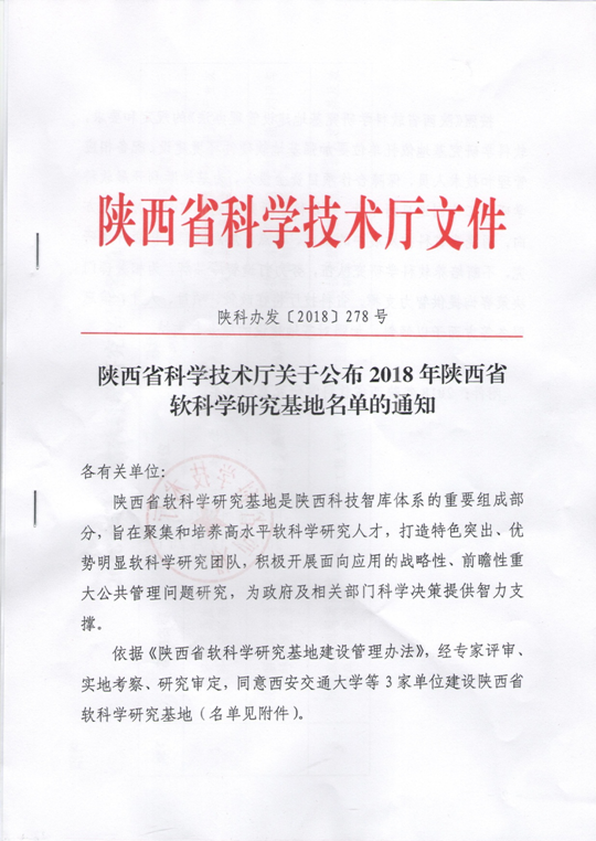 12月10日,陕西省科技厅下发了《陕西省科学技术厅关于公布2018年陕西省软科学研究基地名单的通知》(陕科办发〔2018〕278号),黑料网