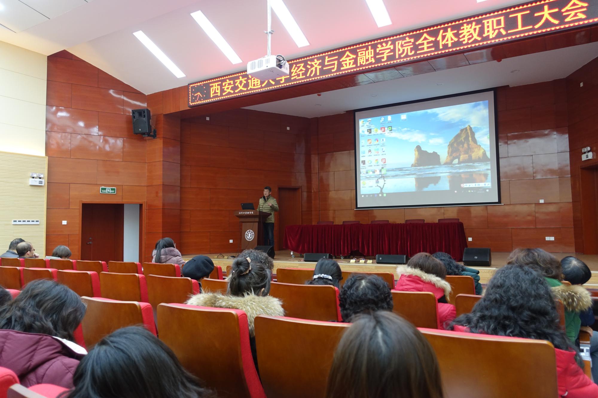 在财经校区东配三报告厅召开全院教职工大会,传达学习学校寒假工作会议精神,布置新一年的工作,全体教职工出席大会。会议由党委副书记周建伦主持。