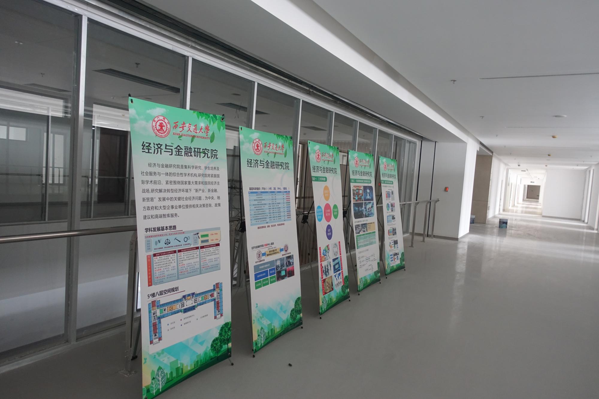 沿着园区道路,来到文科大楼经济与金融研究院楼层,沈灏副院长从功能划分方面向大家详细介绍了研究院整体分配,带领大家对整个楼层进行了踏勘,尤其是对各个研究所布局和二次装修进行了讨论。研究所现已规划4所、2室、3中心、3基地的建设,未来研究院将是集科学研究、学生培养及社会服务与一体的综合性学术机构。