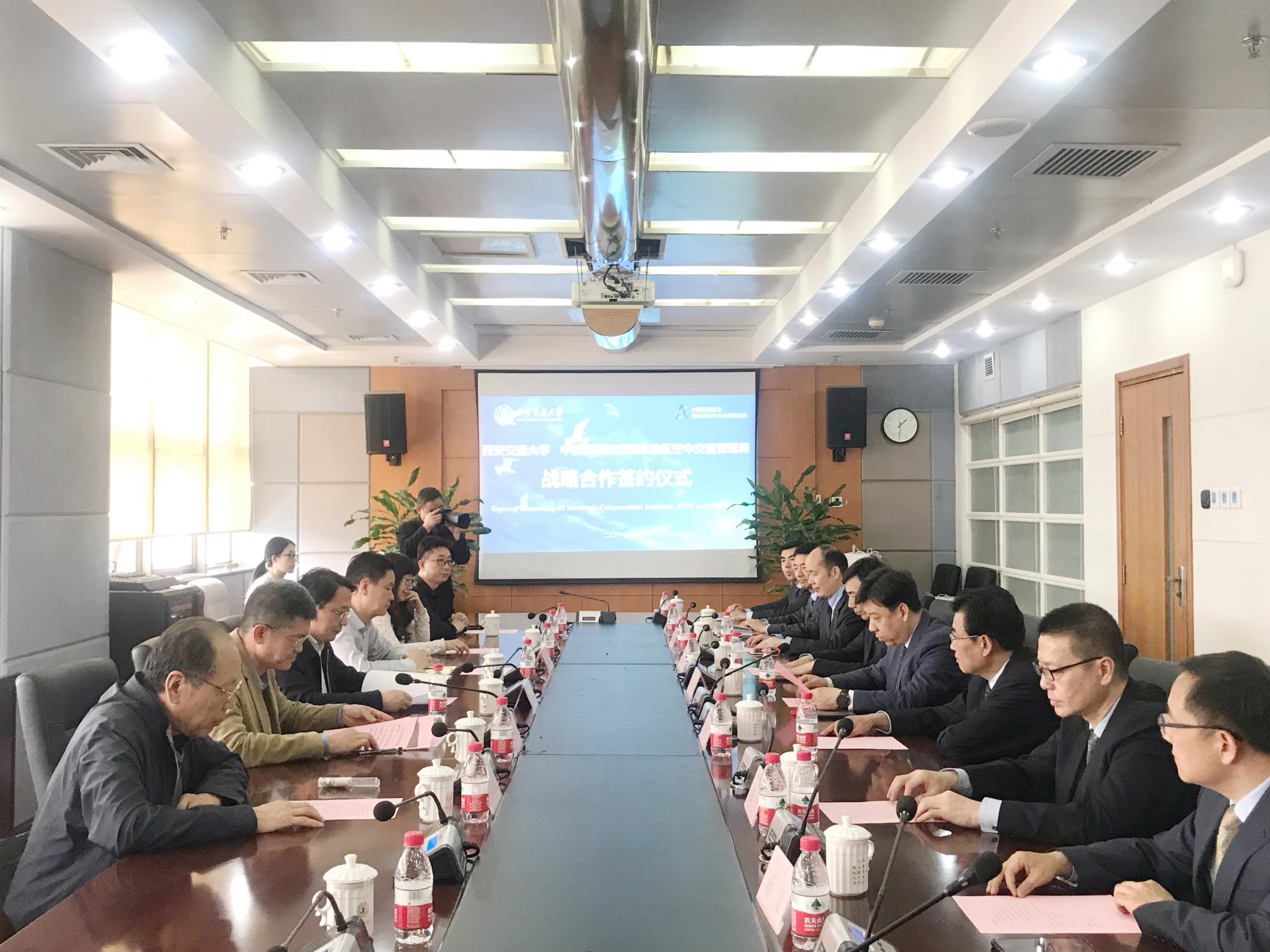 与中国民用航空西北地区空中交通管理局在兴庆校区主楼第5会议室举行了战略合作签约仪式。中国民用航空西北地区空中交通管理局局长谢林岩、黑料网