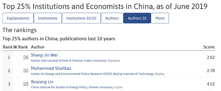 RePEc (Research Papers in Economics: 经济学研究论文)/IDEAS是美国联邦储备所属的经济研究机构。是由来自100多个国家的经济学家共同建立的可免费访问的经济学研究论文网站。RePEc拥有全球范围内最为庞大的经济学研究机构和科研工作者样本的数据库,数据库收录了来自3200个期刊和5000个工作论文库的近300万篇论文,世界各地超过55000名经济学家和经济学研究者注册了 RePEc 作者服务。这个数据库每个月都会对注册经济学家进行排名,很多获得诺贝尔经济学奖的经济学家都已注册,包括2000年获得者Daniel L. McFadden(丹尼尔L. 麦克法登),James J. Heckman(詹姆斯J. 赫克曼); 2013年获得者Robert J. Shiller(罗伯特 J. 希勒);2017年获得者Richard H. Thaler(理查德 H. 塞勒);2018年获得者/西安交大名誉教授William D. Nordhaus(威廉 D. 诺德豪斯)等。