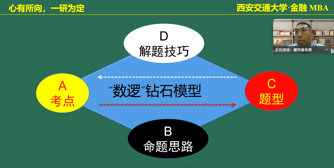 MBA中心副主任刘泓汛教授代表中心向参加活动的考生表示热烈欢迎,并对今天联袂“传经送宝”的权威专家和高分学长学姐致以诚挚感谢。她强调,西安交大金融MBA项目一直在努力探索和实践商科教育的前沿理念,积极构建务实、高效、高质量的培养体系,为学生打造全方位的成长支持平台。本次分享会正是回应广大考生的实际需求,帮助大家在备考冲刺阶段明确方向、提高效率。最后,刘教授祝愿所有考生考试顺利,圆梦交大!