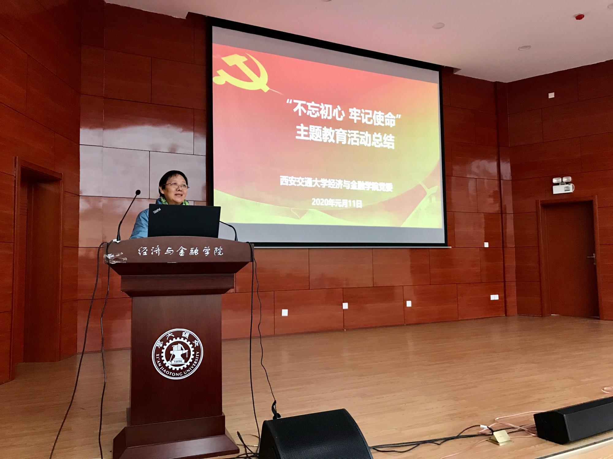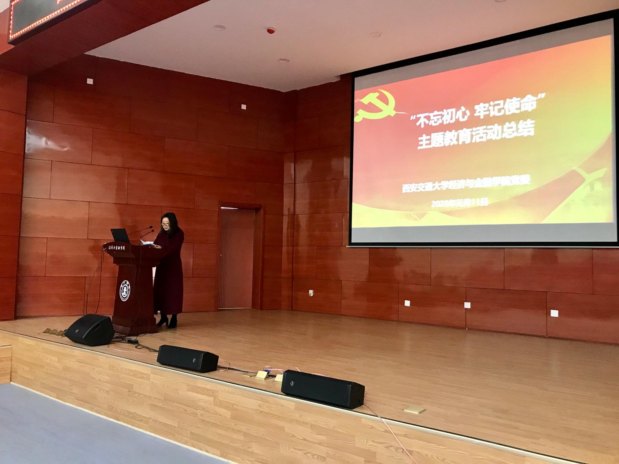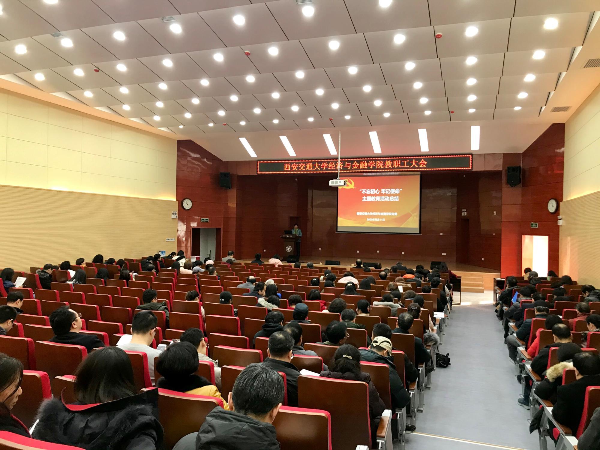 在财经校区东配三报告厅召开“不忘初心、牢记使命”主题教育总结大会,全院教职工参会,学校第十指导组申小莹组长到会指导,学院党委周建伦副书记主持大会。