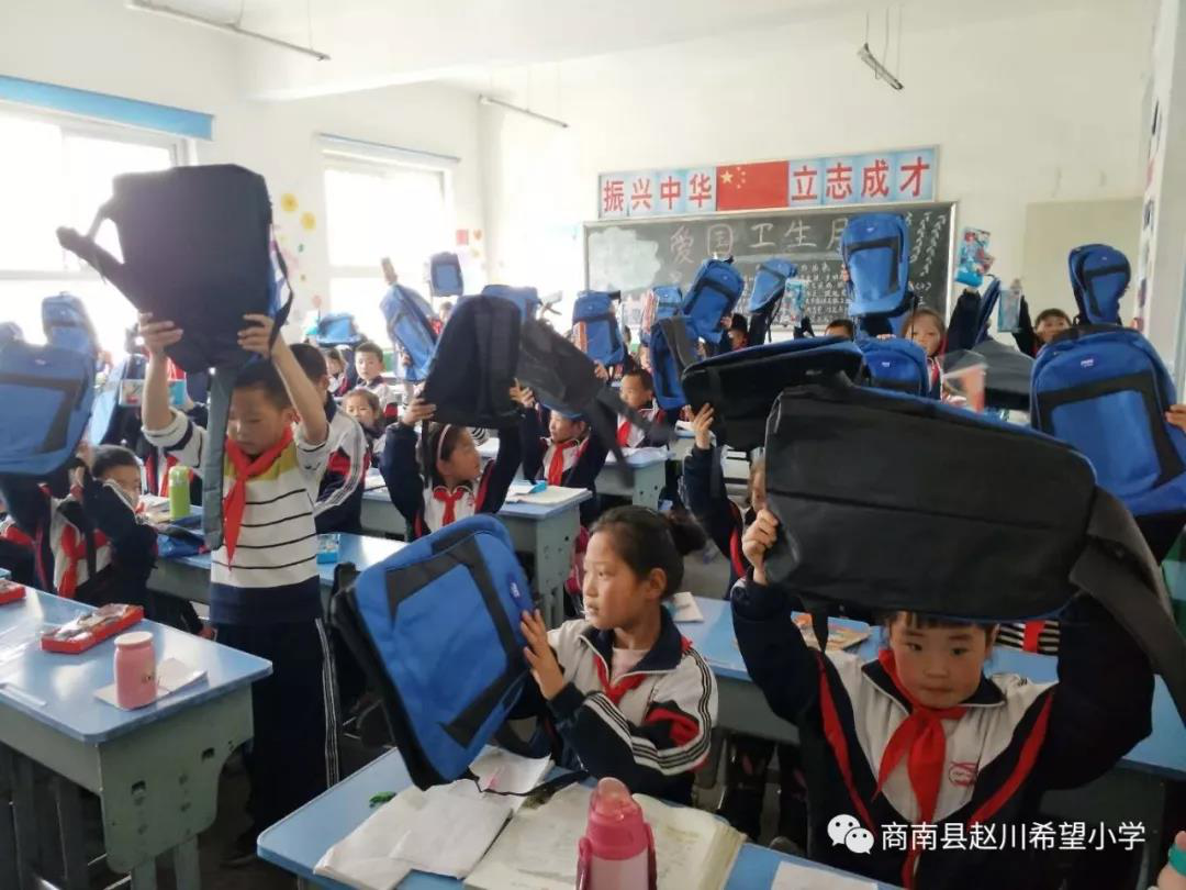 捐赠的书包和文具送到孩子们手中
